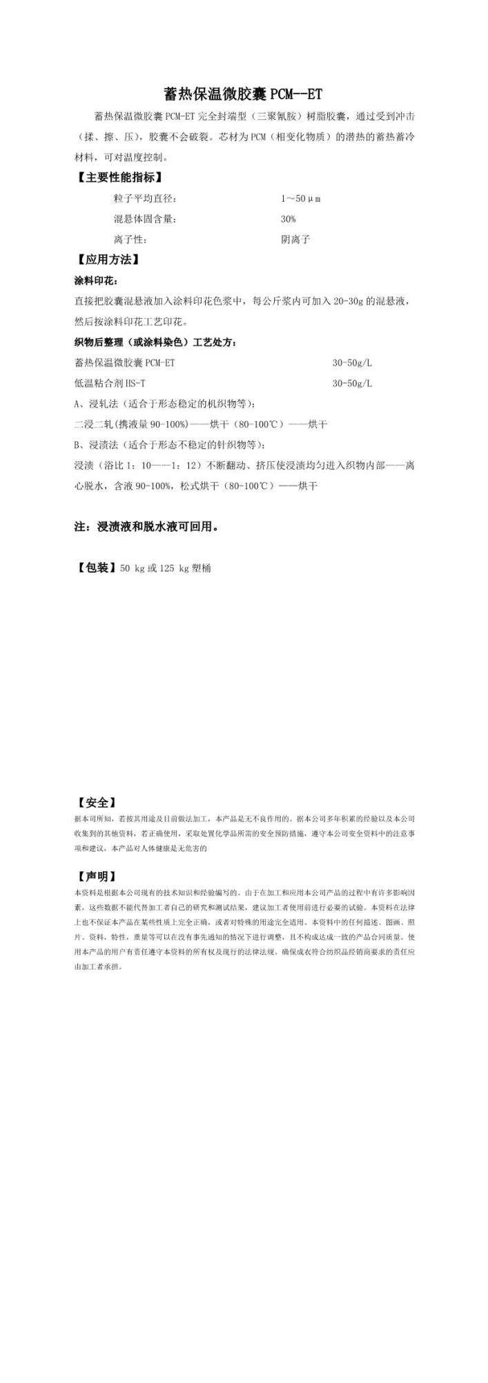 Thermal storage and thermal insulation microcapsule PCM-ET